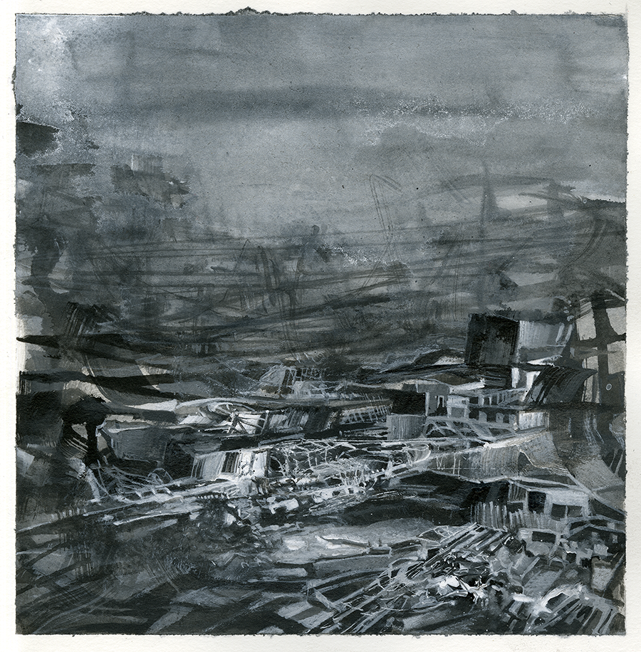Geografica Nervosa No. 19 (2018), acrylic on watercolor paper, 8 x 8 in.