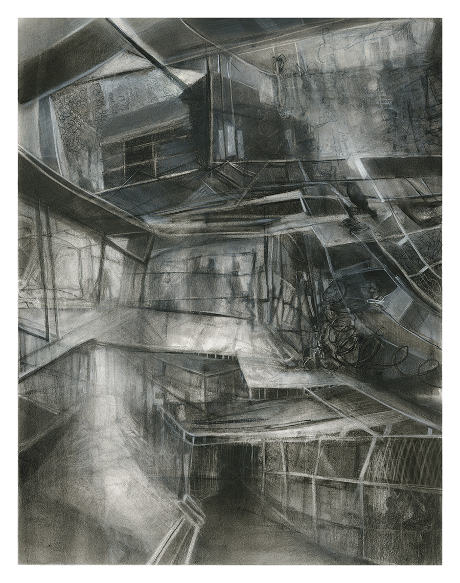 Unterstadt (2018). Charcoal on Bristol paper, 24 x 19 in.